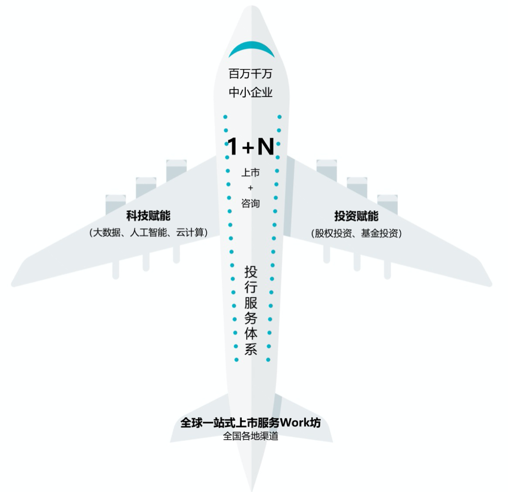 未来将成为全球化专业的一站式金融投行服务平台,为全球优秀的中小企业,尤其是中国为主的科创、双创类企业提供“上市辅导及融资相关的一体化优质服务”。为全球具有发展潜力的中小企业乃至大型企业提供上市辅导、规范治理、企业改制、财务顾问、上市融资、IPO 上市咨询、品牌塑造、市场策划及视频制作、注册等产品服务。